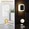 - Dusk to Dawn Sensor Night Light--Built-in sensitive light sensor, the nightlight automatically turns on at dusk and off at dawn. Emitting gentle light